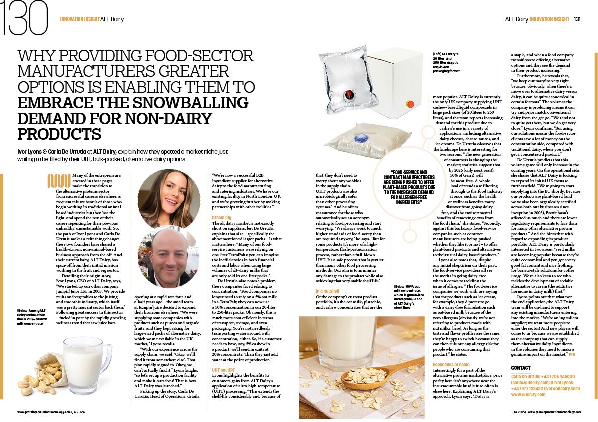 Ivor Lyons & Carla De Urrutia at ALT Dairy explain how they spotted a market niche just waiting to be filled by their UHT, bulk-packed, alternative dairy options