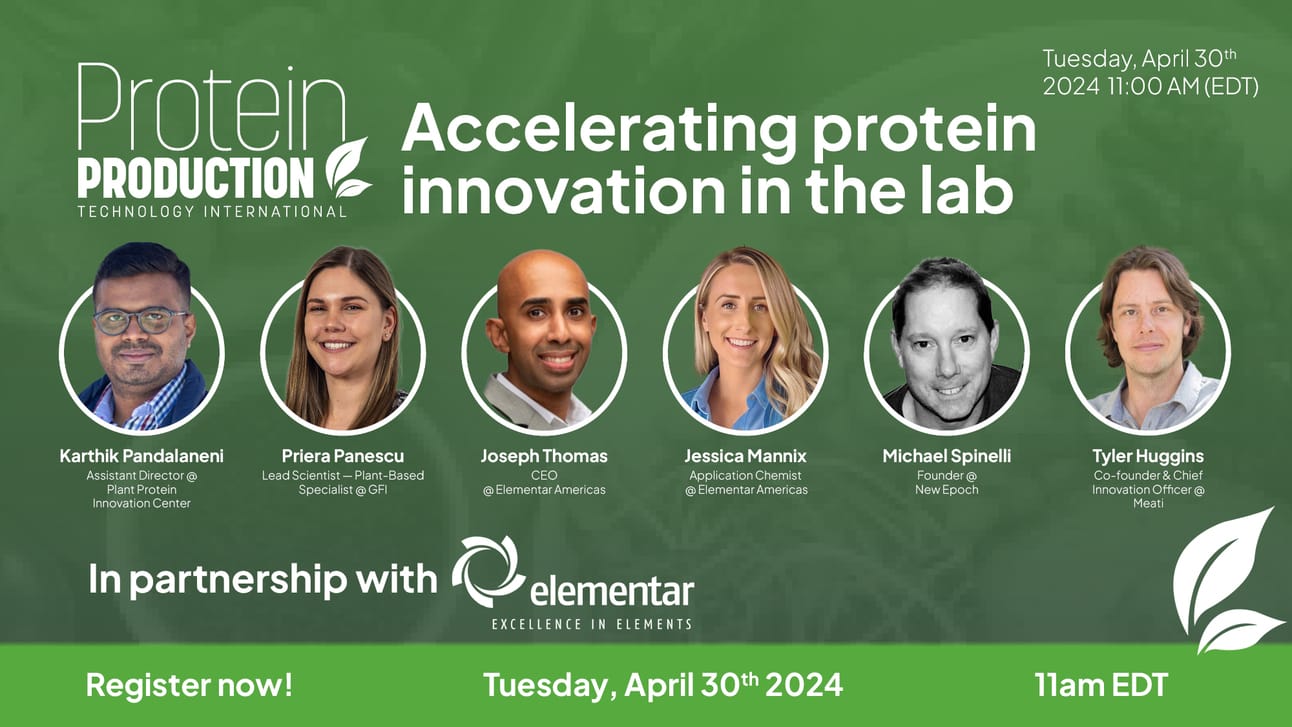 This panel discussion will focus on the challenges faced in developing alternative proteins at a lab scale and highlight some of the must-have technologies to increase efficiency and speed up development. Speakers so far include Karthik Pandalaneni, Assistant Director, Plant Protein Innovation Center, Priera Panescu, Lead Scientist, Plant-Based Specialist at The Good Food Institute, Tyler Huggins, Chief Innovation Officer & Co-founder, Meati, Joseph Thomas, CEO, and Jessica Mannix, Application Chemist, both from Elementar Americas