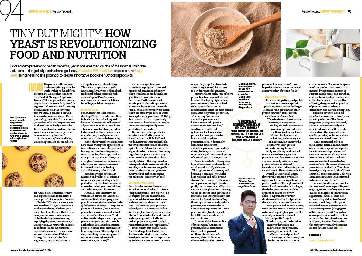 Packed with protein and health benefits, yeast has emerged as one of the most sustainable solutions to the global protein shortage. Here, Dr Weizhe (Winston) Sun explores how Angel Yeast is harnessing this potential to create innovative food and nutritional products