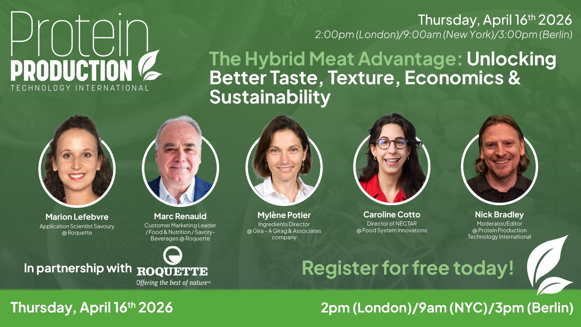 Join us on Thursday, April 16, 2026 (2pm London / 3pm CET / 9am New York City) for a deep dive into why hybrid product design is emerging as one of the most practical and scalable approaches in next-generation food.
