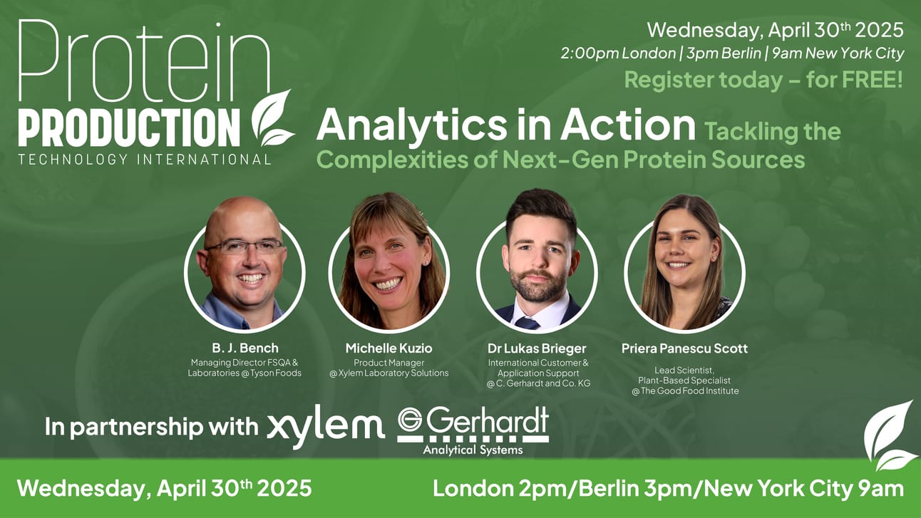 Join us for an another free-to-attend webinar session, this time sponsored by Xylem Lab Solutions and Gerhardt Analytical Systems, as we put analytics in action to unravel some of the most complex challenges in alternative protein production: how to accurately measure, standardize, and optimize nutritional and functional profiles across emerging protein sources. Whether you're working with plant-based, microbial, algal, cell-cultivated, or precision fermentation proteins, the journey from lab bench to label claim is far from straightforward.