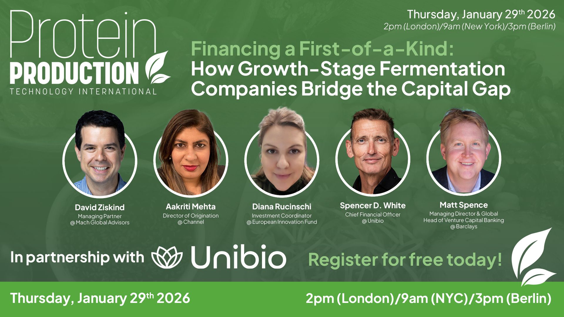If you’re navigating the leap from pilot success to commercial-scale fermentation, this is a conversation you won’t want to miss. Join us on Thursday, January 29, 2026 (2pm London / 3pm Berlin / 9am New York City) for a timely deep dive into how growth-stage fermentation companies are financing first-of-a-kind industrial assets.