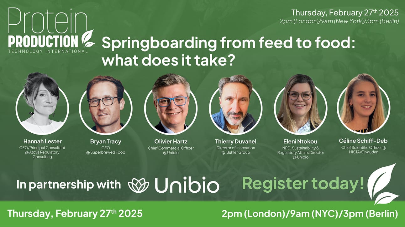 In this webinar, Springboarding from feed to food: What does it take?, on Thursday 27th February 2025, sponsored by Unibio, we will bring together industry leaders, technical experts, and entrepreneurs to provide insights into overcoming technical hurdles, adapting to food-grade standards, and building consumer trust in a rapidly evolving market.