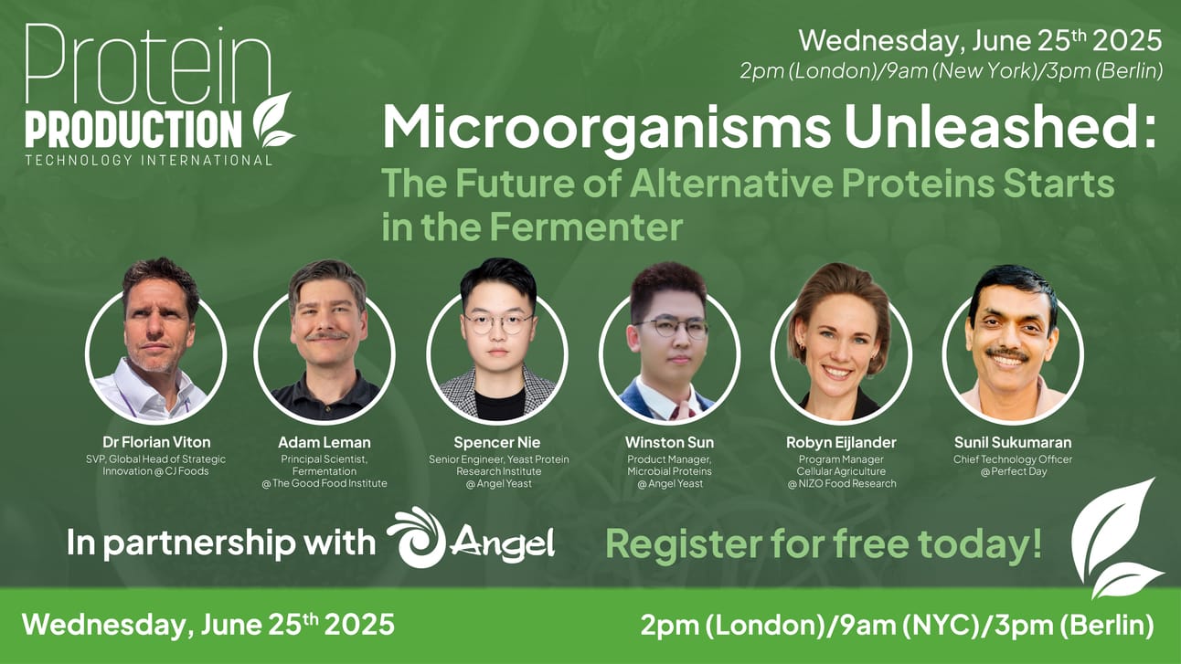 Join us on tomorrow, 25 June 2025 at 2pm London / 3pm Berlin / 9am New York City, for another free-to-attend webinar from Protein Production Technology International: Microorganisms Unleashed: The Future of Alternative Proteins Starts in the Fermenter – in partnership with Angel Yeast.